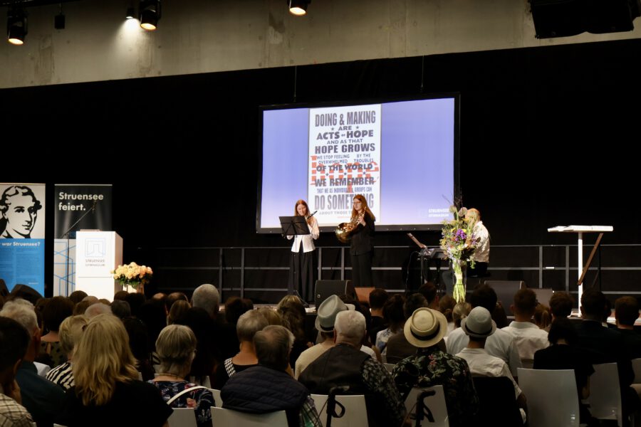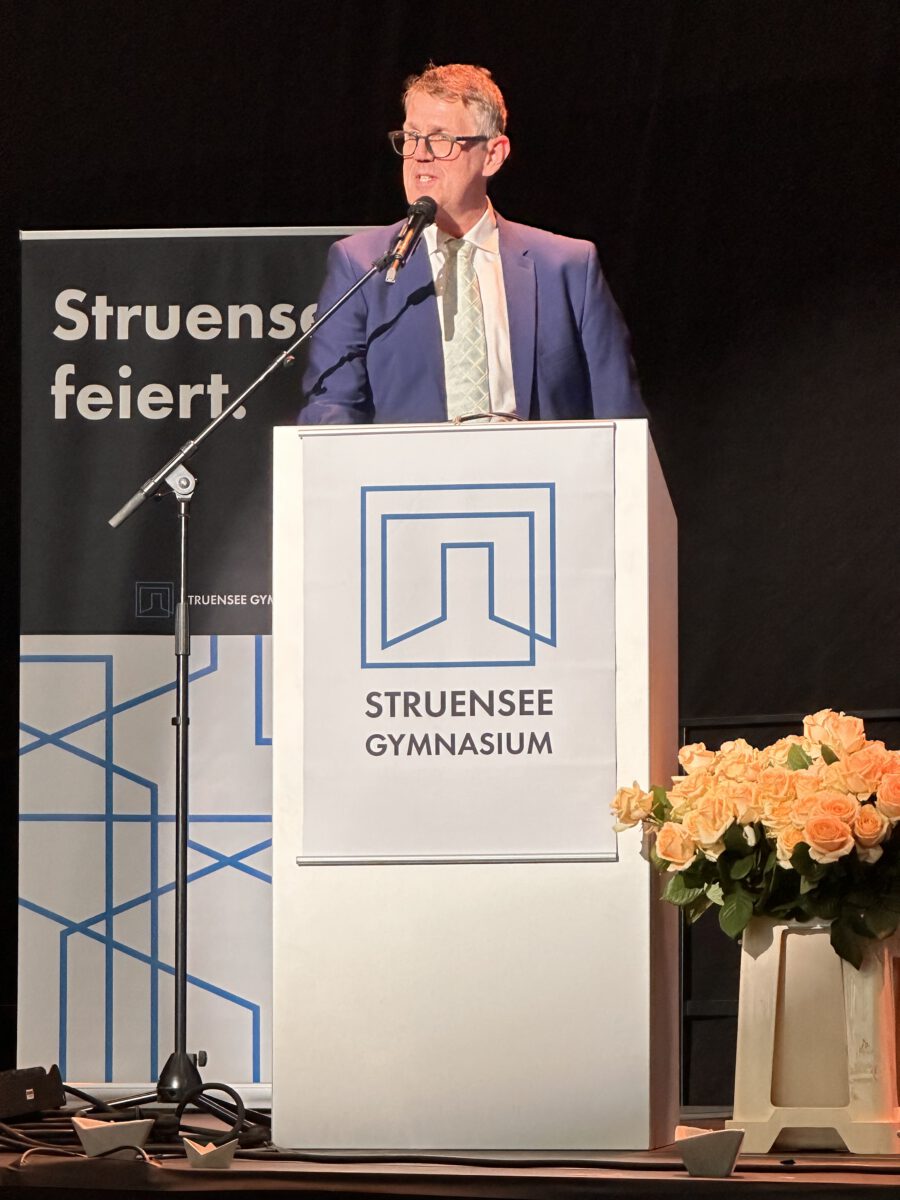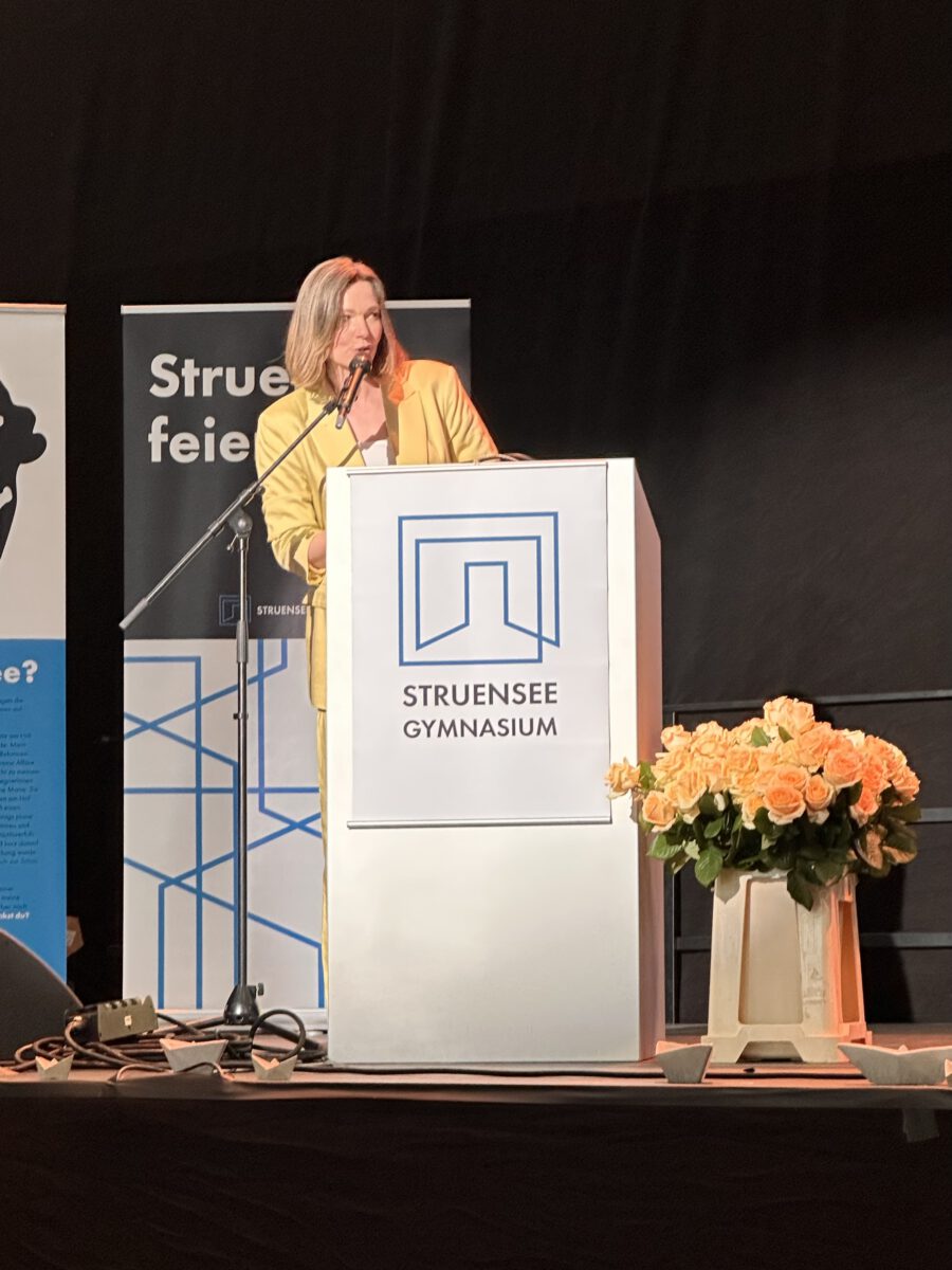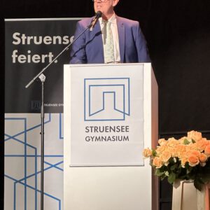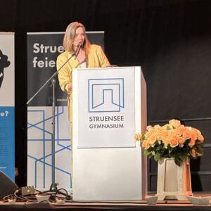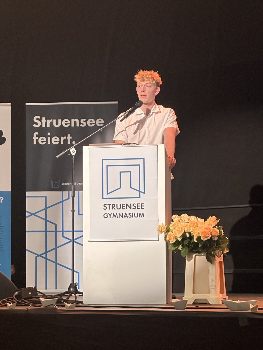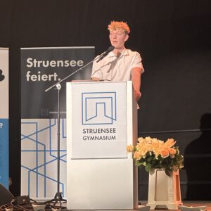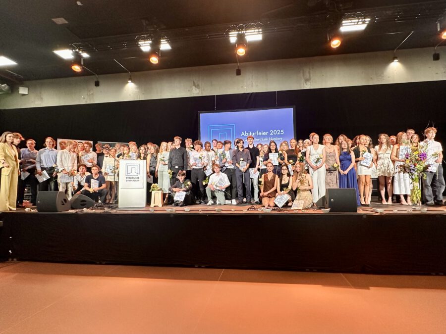 Acht Jahre Schulleben am Struensee Gymnasium sind am Freitag, den 11.07.25 mit der feierlichen Übergabe der Zeugnisse zum Erreichen der Allgemeinen Hochschulreife zu Ende gegangen. Hinter den Abiturientinnen und Abiturienten liegt eine lange Zeit des Lernen und Grübelns, des Bangens, der Hoffnung und der Freude. Pünktlich zum Beginn der schriftlichen Abiturprüfungen am 29.04.25 zeigte sich die Hamburger Sonne von ihrer besten Seite und ließ in den folgenden Wochen die Schülerinnen und Schüler nicht nur über den zu bewältigenden Aufgaben schwitzen. So war es nur richtig, dass auch am Freitagnachmittag der Weg zur Georg-Elser-Halle und das Erklimmen des Bergpfades von Sonnenschein begleitet war. In einer stimmungsvollen Veranstaltung fanden Schulleitung, Lehrkräfte, aber auch Schülerinnen und Schüler passende Worte, solch einen besonderen Moment zu erleben.