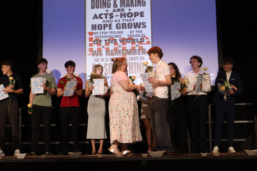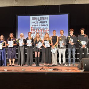 Ein Dank gilt an dieser Stelle auch Thomas Bischoff, der die musikalische Rahmung der Verleihung organisierte. Beim abschließenden Empfang, den Schülerinnen und Schüler des Jahrgangs 11 tatkräftig unterstützten, gab es Gelegenheit für zahlreiche schöne Gespräche. Wir als Schule sind stolz darauf, diese jungen Menschen hinaus ins Leben begleitet zu haben, das von jetzt an viele unterschiedliche Wege gehen wird.