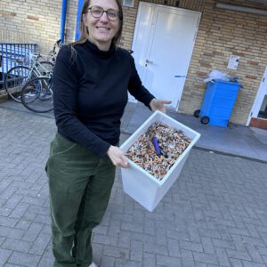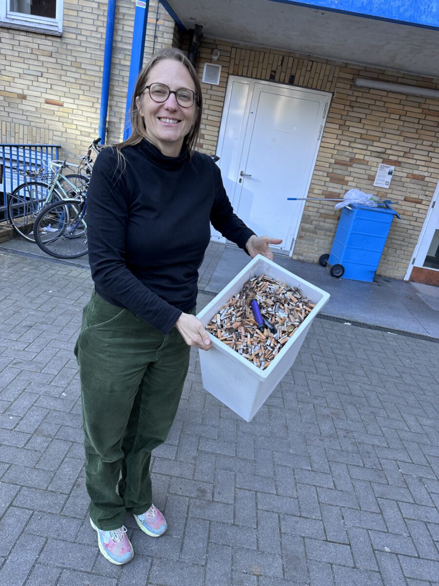 Nach einem kurzen Kahoot-Input über Zigarettenkippen und deren Auswirkungen auf die Umwelt, wurden die Ärmel hochgekrempelt, Handschuhe angezogen und unser Viertel von lauter kleinen Müll-Kippen befreit – viele waren erschrocken, wie viel in so kurzer Zeit da zusammengekommen ist. Seht selbst.