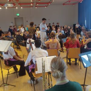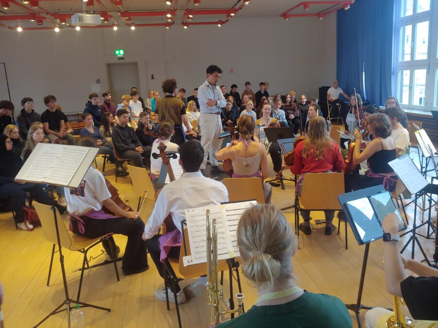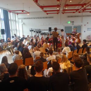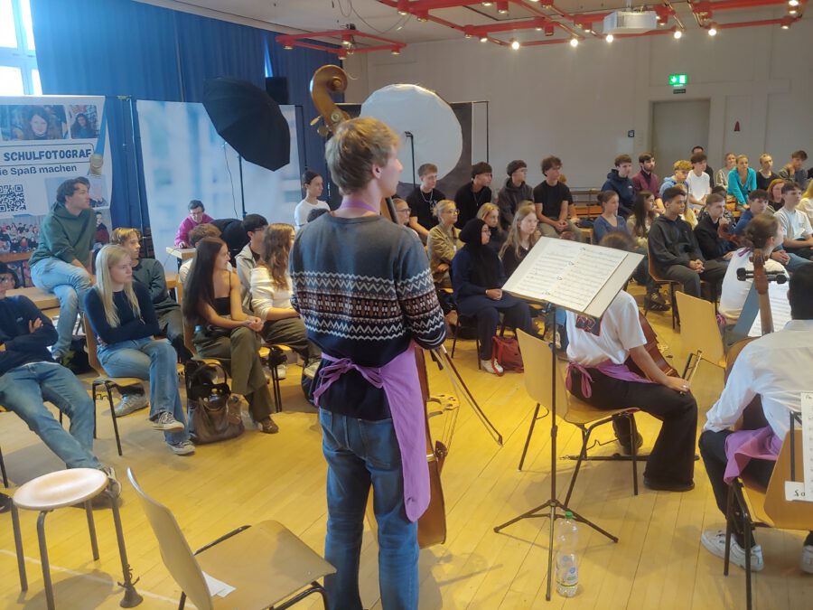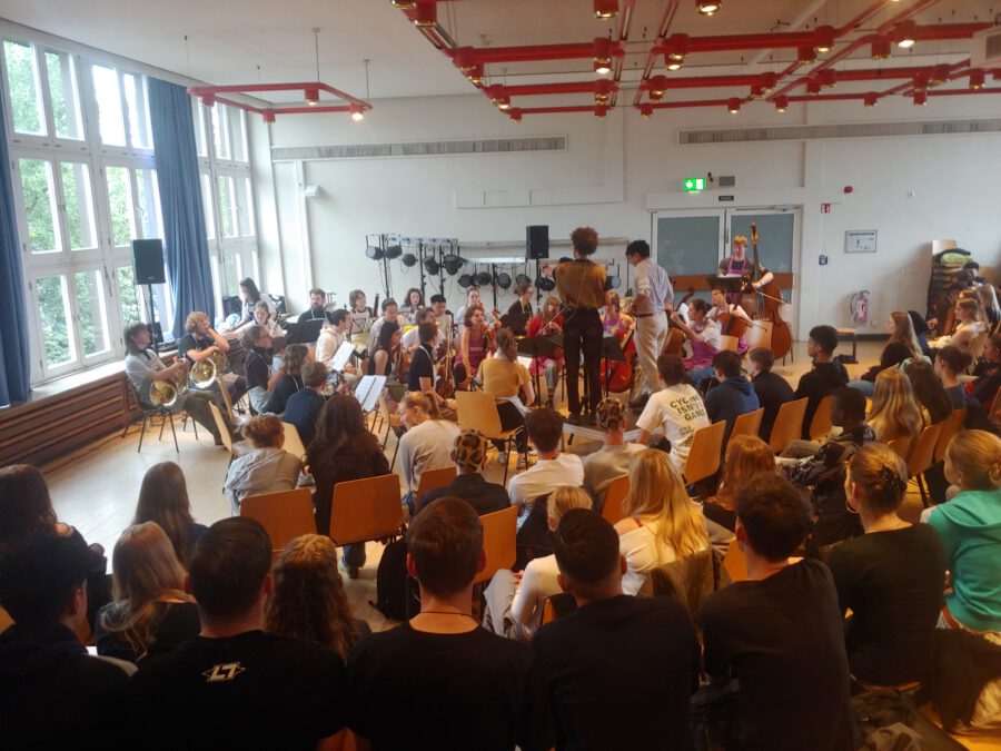 Drei Oberstufenkurse waren am Do, 18.09. mittags zu Gast bei einem Konzert der besonderen Art: Es gab moderne, klassische, kurzweilige und dynamische Orchestermusik gepaart mit einem Sprecher, der im Intro, in den Übergängen und zum Abschluss dem Publikum sehr gewitzt und gekonnt eine Gesellschaft im Wandel skizzierte, die dystopische Züge annehmen könnte. Großartig war auch die Zugewandheit aller anwesenden Musiker und Musikerinnen der „Jungen Norddeutschen Philharmonie“, die sich vor allem zeigte, als sie am Ende des Konzertes auf die Schüler und Schülerinnen zugingen und mit ihnen in Kleingruppen über diese oder andere mögliche Entwicklungen unserer Gesellschaft ins Gespräch kamen. Ein tolles Format – gern wieder!