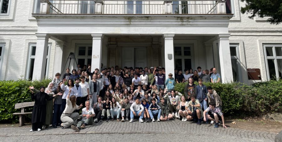 2. Schüler:innen der Klassen 6-10 sind von der Schule mit einem Reisebus angereist, die Oberstufenschüler:innen gemütlich mit der Bahn und einem Reisebus-Transfer