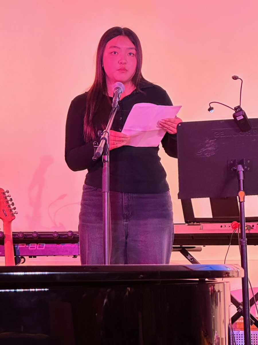 Die Bühne wurde mit einer Vielzahl von Darbietungen zum Leben erweckt. Von emotionalen Gesangseinlagen über Lesungen bis hin zu kreativen Videos und unterhaltsamen Spielen – die Vielfalt der Beiträge war beeindruckend. Die Instrumentalbeiträge sowohl von Schülern und Schülerinnen als auch von der Elternband rundeten das Programm ab.